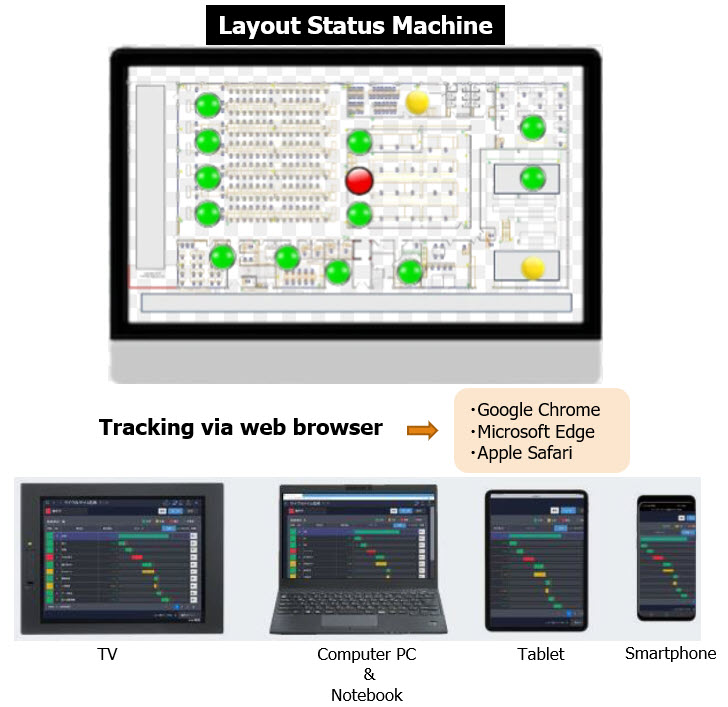 TT Fuji ทำระบบดึงข้อมูล Tower lamp จากเครื่องจักร แสดงสถานะของเครื่องจักร ส่งเข้ามือถือได้แบบเรียลไทม์ ทั้งเครื่องจักรรุ่นเก่าและรุ่นใหม่ อีกทั้งยังกำหนดรูปแบบหน้าจอได้ตามต้องการ